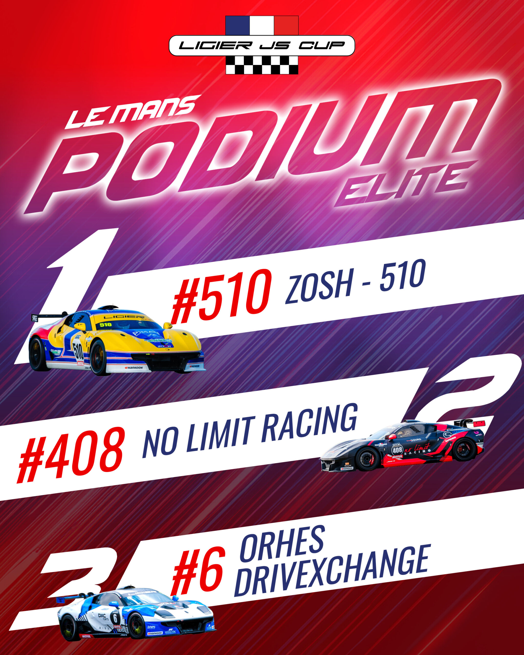 La Ligier JS2 R #22 du team ZOSH signe une magnifique victoire en Gentleman avec l’expérimenté Guillaume Brichard associé cette année à Romain Lavocat. Ils s’imposent avec 15 secondes d’avance seulement sur la #63 2FAST4U du trio Maxence Bara, Frédéric Taquet et Marc-Olivier Van Oppens, débutants dans la série ! La LADC #48 montent sur la troisième marche de ce podium mérité avec Yves Bandi, Eurico Pacheco et Silvain Pastoris !